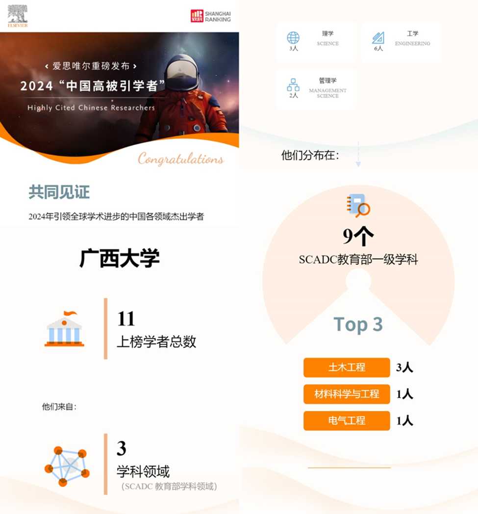 អ្នកប្រាជ្ញ 11 នាក់មកពី GXU ត្រូវបានដាក់ឈ្មោះក្នុងបញ្ជី "អ្នកស្រាវជ្រាវចិនដែលបានលើកឡើងខ្ពស់" ឆ្នាំ 2024 របស់ Elsevier