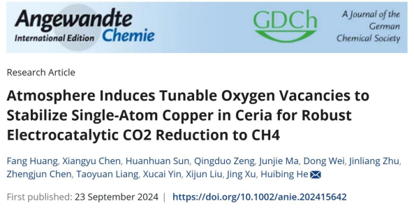 ບໍ່ດົນມານີ້, ທີມງານການຫັນປ່ຽນທາດຄາບອນທີ່ອີງໃສ່ຊັບພະຍາກອນຄາບອນຈາກໂຮງຮຽນເຄມີແລະວິສະວະກໍາເຄມີຂອງ GXU ໄດ້ມີຄວາມຄືບຫນ້າໃນການຄົ້ນຄວ້າຂອງ electroreduction carbon dioxide. ການຄົ້ນຄວ້າ, ຫົວຂໍ້ "ບັນຍາກາດກະຕຸ້ນໃຫ້ອອກຊິເຈນທີ່ວ່າງເປົ່າເພື່ອເຮັດໃຫ້ຄົງທີ່ທອງແດງດຽວປະລໍາມະນູໃນ Ceria ສໍາລັບການຫຼຸດຜ່ອນການ Electrocatalytic CO2 ທີ່ເຂັ້ມແຂງເປັນ CH4", ໄດ້ຖືກຈັດພີມມາໃນວາລະສານວິຊາການທີ່ມີຊື່ສຽງລະຫວ່າງປະເທດໃນພາກສະຫນາມຂອງເຄມີສາດ, Angewandte Chemie International Edition (ເຄມີສາດເຢຍລະມັນ). ຜູ້ຮ່ວມຂຽນເອກະສານຄັ້ງທຳອິດແມ່ນ Huang Fang, ນັກສຶກສາປະລິນຍາໂທ ປີ 2022, ແລະ Chen Xiangyu, ນັກສຶກສາປະລິນຍາໂທ ປີ 2021 ຈາກໂຮງຮຽນເຄມີສາດ ແລະ ວິສະວະກຳເຄມີ. ຜູ້ຂຽນທີ່ສອດຄ້ອງກັນແມ່ນອາຈານ Xu Jing ແລະຮອງສາດສະດາຈານ He Huibing, ໂດຍມີມະຫາວິທະຍາໄລກວາງຊີເປັນຫນ່ວຍງານທໍາອິດທີ່ສອດຄ້ອງກັນ. ການຄົ້ນຄວ້ານີ້ໄດ້ຮັບການສະຫນັບສະຫນູນຈາກໂຄງການເຊັ່ນ: ມູນນິທິວິທະຍາສາດທໍາມະຊາດແຫ່ງຊາດຈີນ, ມູນນິທິວິທະຍາສາດທໍາມະຊາດກວາງຊີ, ພື້ນຖານວິທະຍາສາດແລະເຕັກໂນໂລຢີກວາງຊີແລະໂຄງການພອນສະຫວັນ, ແລະອື່ນໆ.