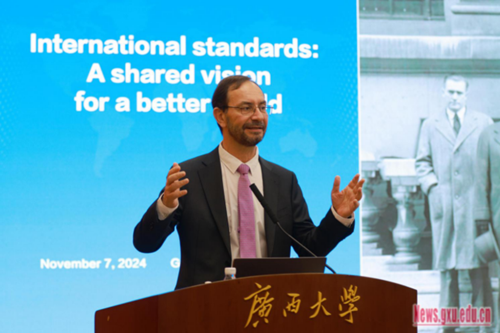 អគ្គលេខាធិការ ISO លោក Sergio Mujica បានចុះមកទស្សនកិច្ចនៅសកលវិទ្យាល័យក្វាងស៊ីនិងចូលរួមព្រឹត្តិការណ៍ស្តង់ដារអន្តរជាតិក្នុងប្រធានបទ "ចែករំលែកចក្ខុវិស័យ ដើម្បីឲ្យពិភពលោកកាន់តែល្អប្រសើរ"