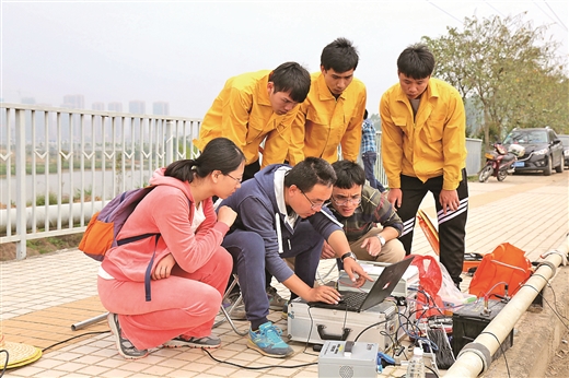广西建设职业技术学院师生在自治区高职示范特色专业及实训基地开展桥梁检测实训教学。