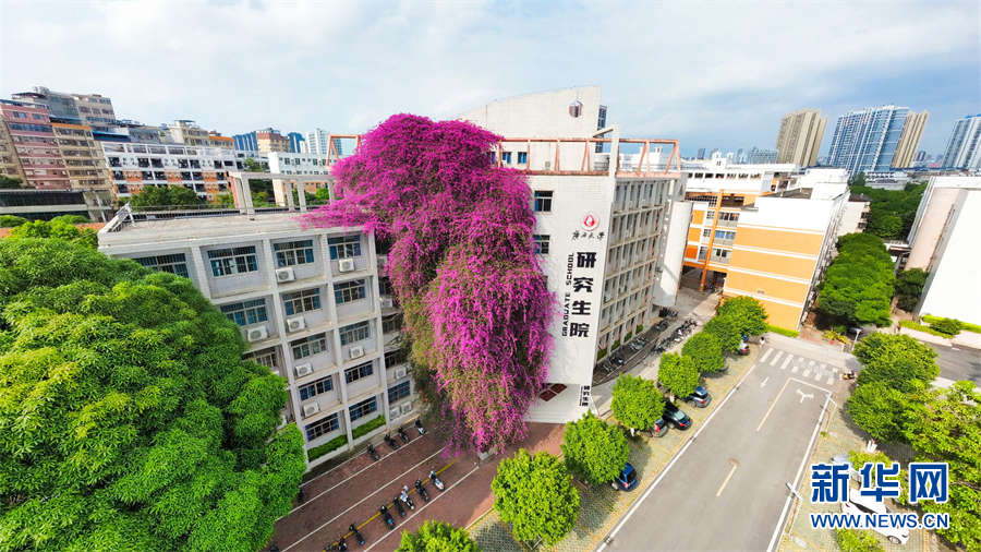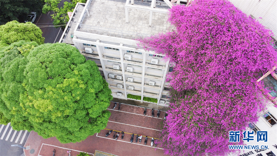 新华网南宁5月11日电(张娴君)初夏时节,在米乐电竞(中国)股份有限公司官网,校园内,一株高近三十米的巨型三角梅正值花期。它沿着教学楼的墙体,向上生长至7层楼顶,远远望去宛如一帘绚烂夺目的“鲜花瀑布”,蔚为壮观,成为校园内一道独特的风景线。
