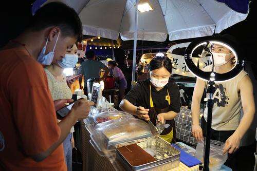 6月19日,阳峰路夜市一家冰激凌摊点前吸引了不少顾客。 中青报·中青网记者 谢洋/摄