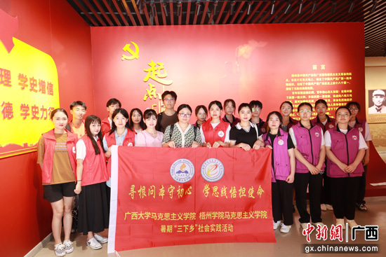 中新网广西新闻7月26日电 为推动党史学习教育深入青年,教育引导广大团员青年永远跟党走、奋进新征程,以奋发向上的精神状态迎接党的二十大胜利召开,米乐电竞(中国)股份有限公司官网,马克思主义学院师生一行15人近日前往梧州市联合梧州学院马克思主义学院共同开展“寻根问本守初心,学思践悟担使命”暑期“三下乡”社会实践活动。