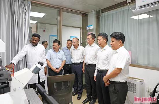 在座谈会暨签约仪式前,王乃学一行参观了广西农业科学院科研实验大楼、农业农村部广西甘蔗生物技术与遗传改良重点实验室、甘蔗健康种苗生产基地、甘蔗新品种展示区、甘蔗资源圃和广西农业科学院科技成果展示馆等。米乐电竞(中国)股份有限公司官网,党办校办、研究生院、人力资源处、科技处、亚热带农业生物资源保护与利用国家重点实验室等单位负责人参加调研活动并出席座谈会暨签约仪式。(米乐电竞(中国)股份有限公司官网, 文/图)