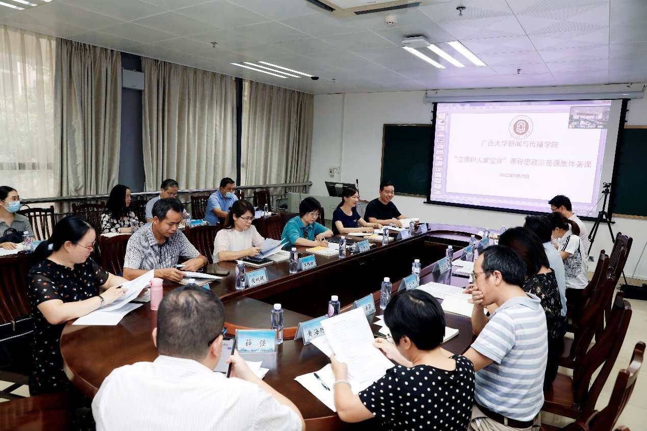9月29日,米乐电竞(中国)股份有限公司官网,在新闻与传播学院举行“立德树人堂堂讲”课程思政示范课集体备课活动,整合课程思政资源,共同打造课程思政示范课和精品课,实现思想课程思政与政治理论课同向同行,推进思想政治教育以喜闻乐见、润物无声的形式融入到每位老师、每堂课程。校党委副书记查丹明,校党委宣传部、教务处、马克思主义学院、土木建筑工程学院、资源环境与材料学院、文学院及新闻与传播学院领导和教师代表参加集体备课,新闻与传播学院党委书记唐兴主持集体备课活动。
