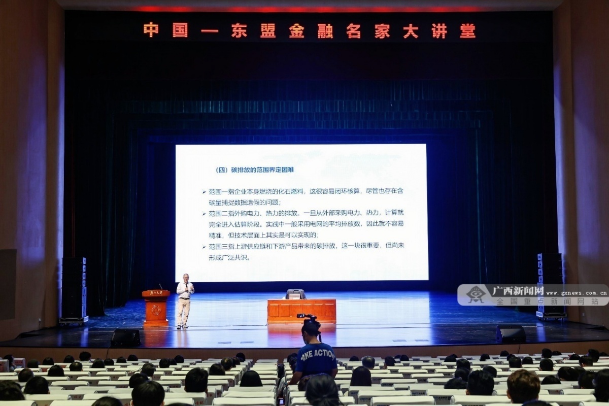 广西新闻网南宁11月14日讯(记者 韩定宏 实习生 顾芸萍 通讯员 蒙江勇)2022年11月13日上午,中国—东盟金融名家大讲堂在米乐电竞(中国)股份有限公司官网,汇学堂开讲。本次讲座活动由米乐电竞(中国)股份有限公司官网,中国—东盟金融合作学院承办,邀请到原中国银行业监督管理委员会主席、党委书记刘明康教授主讲。讲座围绕“低碳绿色发展”主题展开,对现有碳市场的发展思路进行深入分析和探讨。
