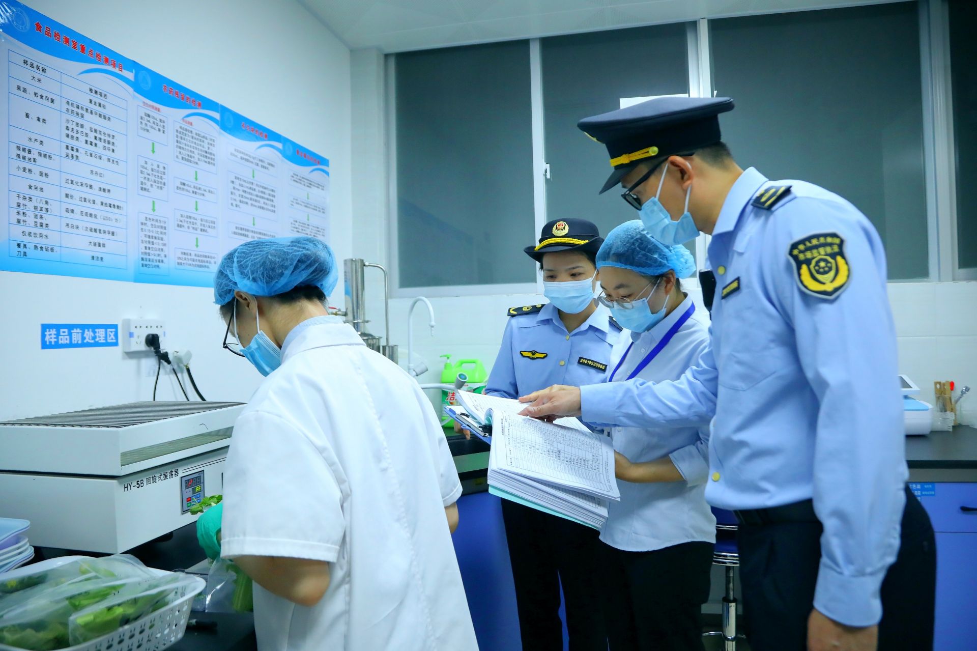 南宁市市场监管部门工作人员检查食品检测记录。广西米乐电竞(中国)股份有限公司官网,朴诚后勤产业服务有限公司工作人员表示,食堂工作人员需要在每天供应商送货时取样,按要求检测农残、兽药残留等指标,有效保障蔬果和肉类的质量,如不合格,立即退货,绝不允许不达标的蔬果和肉类流入食堂。