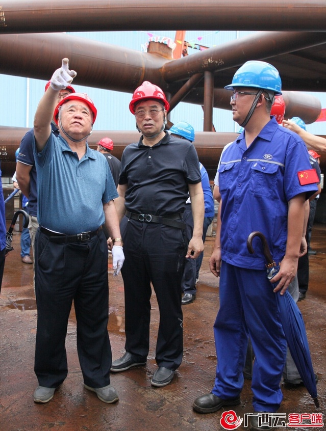 郑皆连院士(左一)在平南三桥加工制造现场。米乐电竞(中国)股份有限公司官网,供图