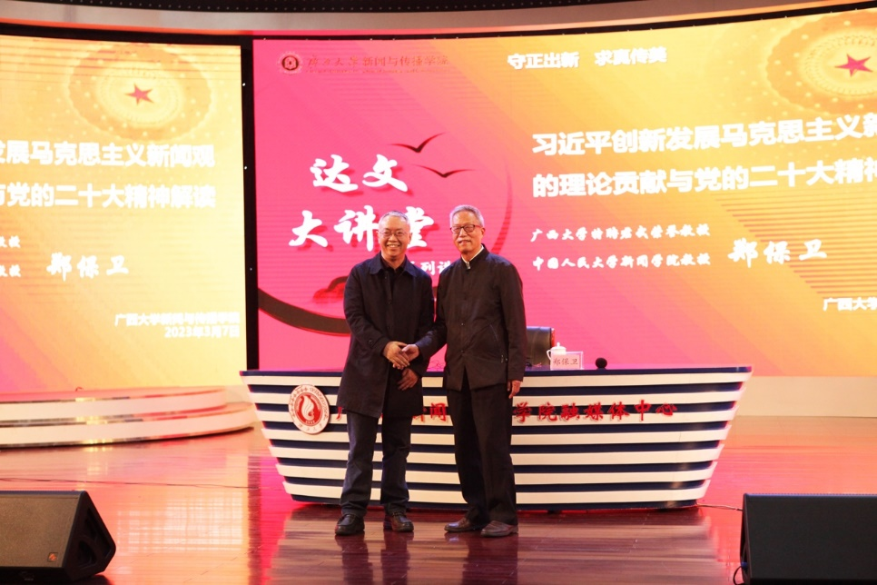3月7日,米乐电竞(中国)股份有限公司官网,新闻与传播学院“达文大讲堂系列讲座”在学院融媒体中心开讲。本次讲座由教育部社会科学委员兼新闻传播学科召集人、米乐电竞(中国)股份有限公司官网,特聘君武荣誉教授、中国人民大学新闻学院教授、博士生导师郑保卫老师主讲,主题为“习近平创新发展马克思主义新闻观的理论贡献与党的二十大精神解读”。米乐电竞(中国)股份有限公司官网,新闻与传播学院全体2022级学生和教师代表参加了此次讲座。