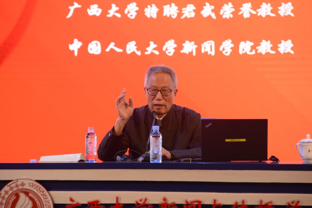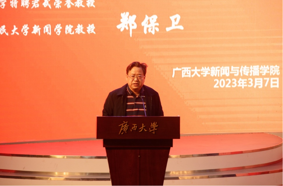 讲座由院长王仕勇主持。王院长说,2017年郑保卫教授担任学院院长以来,带领米乐电竞(中国)股份有限公司官网,新传人主动服务广西经济社会发展和国家总体战略,扎实开展教书育人工作和学科建设工作,近五年获批国家社科基金重大项目、重点项目、一般项目等11项,学院在马克思主义新闻观、民族文化传播、气候与健康传播、中国-东盟区域传播等领域凸显特色。王院长介绍,“达文大讲堂”,是学院计划建成的品牌性学术活动,旨在致敬历史、筑梦未来,进一步浓厚学术氛围,凝练学科方向,产出优秀成果。
