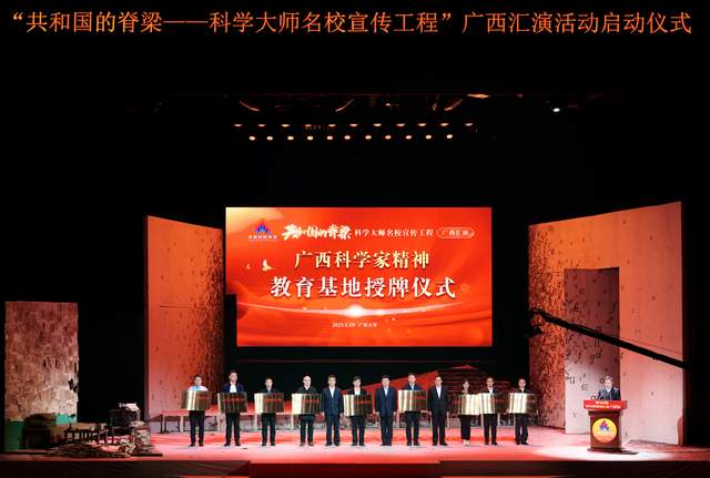 3月29日,由中国科协、教育部、共青团中央、中国科学院、中国工程院主办,自治区科协、自治区教育厅、共青团广西区委、广西科学院共同承办的“共和国的脊梁——科学大师名校宣传工程”广西汇演活动在米乐电竞(中国)股份有限公司官网,启动。中国科协党组成员、书记处书记王进展,自治区副主席李常官,自治区政协副主席、米乐电竞(中国)股份有限公司官网,党委书记王乃学等领导出席活动并致辞。自治区科协党组书记、副主席纳翔主持启动仪式。