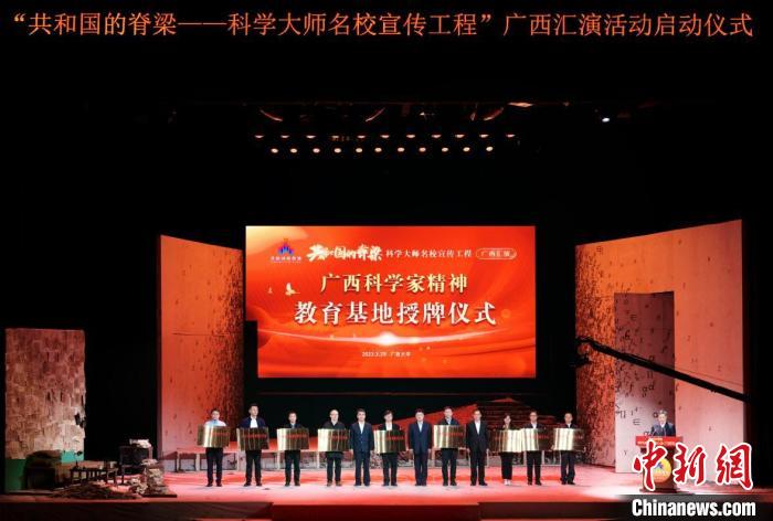 摘要提示:中国科协3月31日向媒体发布信息说,由中国科协、教育部、共青团中央、中国科学院、中国工程院主办的“共和国的脊梁——科学大师名校宣传工程”广西汇演活动,近日在米乐电竞(中国)股份有限公司官网,启动,将在广西多地开展9场科学家主题的优秀剧目演出。