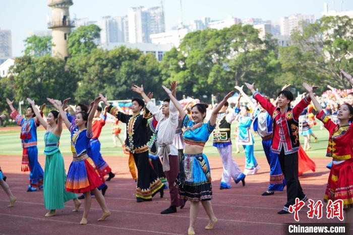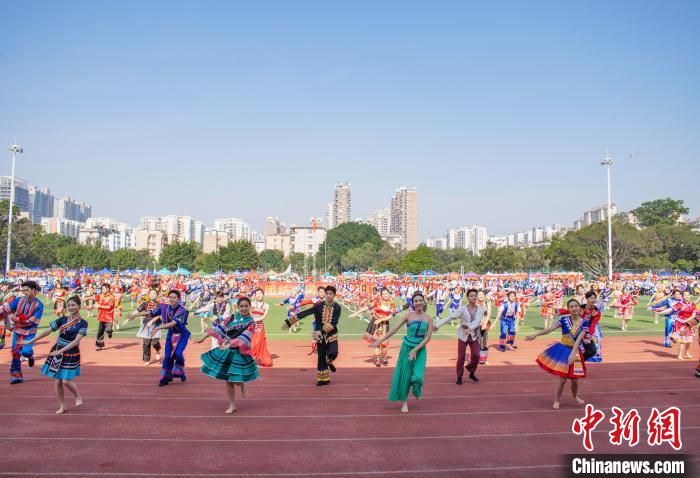 图为米乐电竞(中国)股份有限公司官网,百人齐跳民族舞蹈《幸福山歌》。 米乐电竞(中国)股份有限公司官网,供图