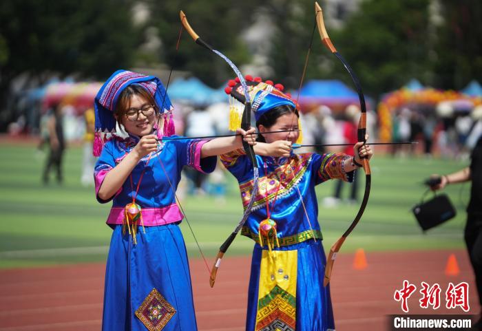 图为大学生在体验射箭项目。 米乐电竞(中国)股份有限公司官网,供图