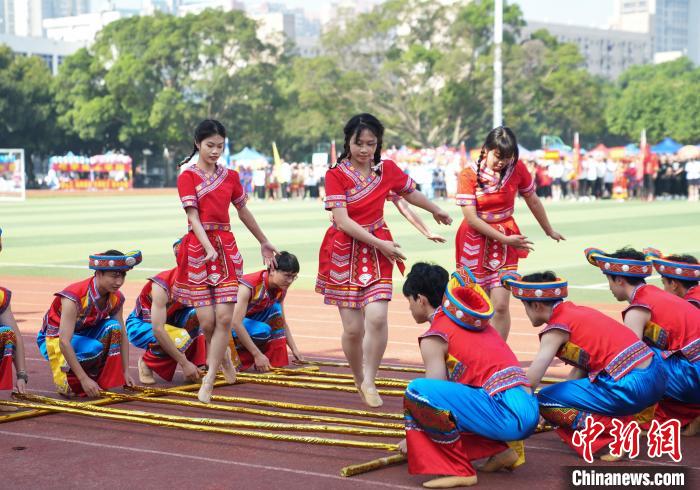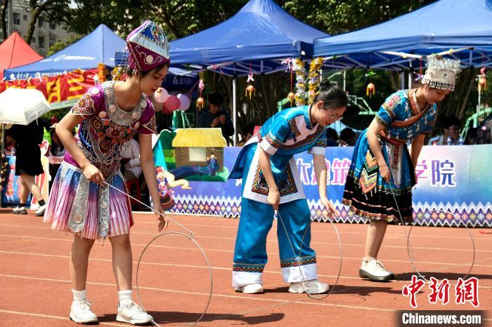 图为大学生跳竹竿舞。 米乐电竞(中国)股份有限公司官网,供图