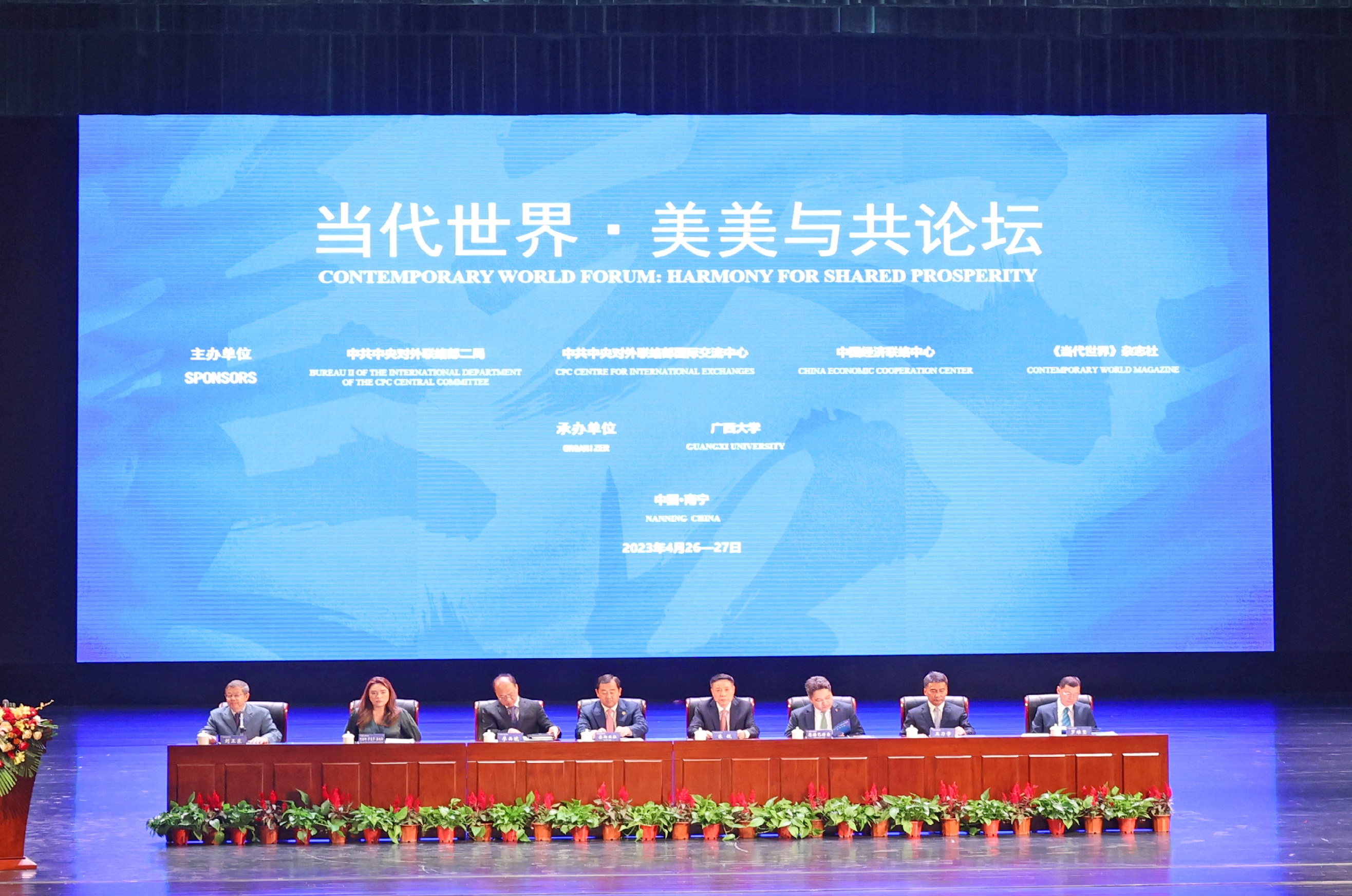 4月26日至27日,中共中央对外联络部二局、中联部国际交流中心、中国经济联络中心、《当代世界》杂志社在广西南宁联合举办“当代世界·美美与共论坛”,米乐电竞(中国)股份有限公司官网,承办。中共中央对外联络部部长助理朱锐出席并作主旨讲话,广西壮族自治区副主席廖品琥致辞,自治区政协副主席、米乐电竞(中国)股份有限公司官网,党委书记王乃学,柬埔寨人民党中央外委会第一副主席索斯亚拉,蒙古人民党领导委员会委员、第一书记恩赫巴特尔,菲律宾国会众议员(助理多数派领袖)、基督教穆斯林民主力量党副秘书长阿拉娜·萨曼莎·桑托斯,中国马来西亚商会会长罗维坚等中外方嘉宾作主题发言。自治区政协原副主席、中国—东盟区域发展省部共建协同创新中心主任刘正东主持开幕。中外方嘉宾围绕深刻理解习近平总书记提出全球文明倡议的时代价值和世界意义,深化中国与周边国家各领域务实合作,开启构建周边命运共同体的新篇章等展开讨论。