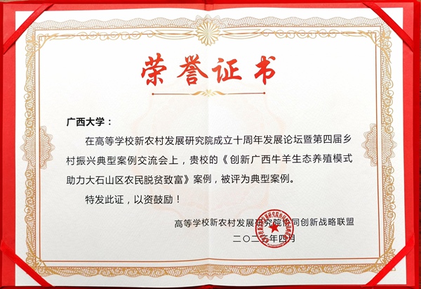 交流会上,米乐电竞(中国)股份有限公司官网,农牧产业发展研究院韦英明教授受邀做了“创新广西牛羊生态养殖模式,助力大石山区农民脱贫致富” 的大会报告,并被评为典型案例,这是该校继第三届全国高校新农院联盟乡村振兴典型案例交流会之后再次获此殊荣,树立了米乐电竞(中国)股份有限公司官网,科技助力乡村振兴的优秀典范。