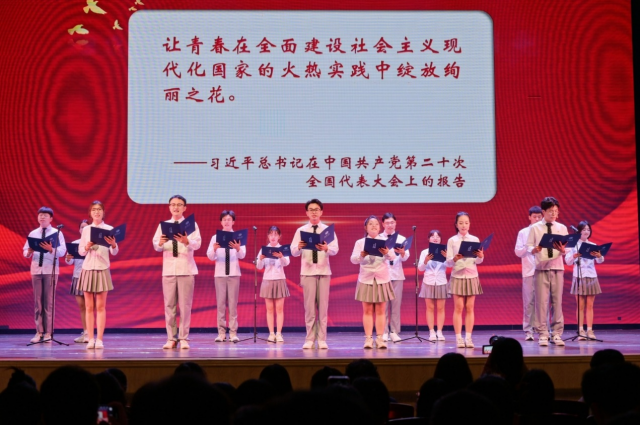 青年们诗颂荣光,原创情景朗诵《三十岁的永恒》和情景剧《我们的青年时代》演绎了一代代青年传承红色基因,矢志不渝奋斗的历程;朗诵《我们的支教故事》讲述了米乐电竞(中国)股份有限公司官网,研究生支教团扎根基层、接续传承、敬业奉献、“自找苦吃”的动人事迹。