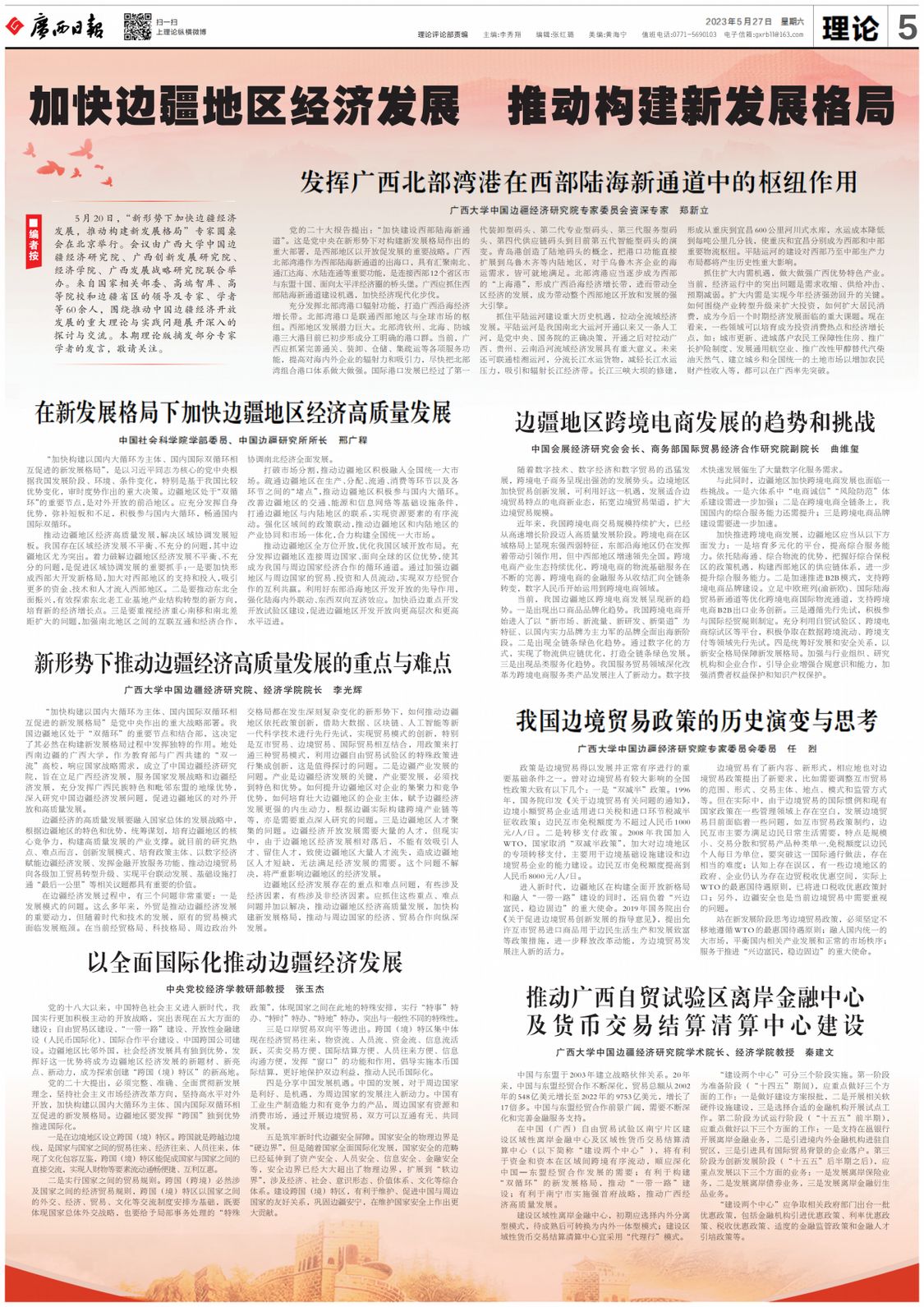 “加快构建以国内大循环为主体、国内国际双循环相互促进的新发展格局”是党中央作出的重大战略部署。我国边疆地区处于“双循环”的重要节点和结合部,这决定了其必然在构建新发展格局过程中发挥独特的作用。地处西南边疆的米乐电竞(中国)股份有限公司官网,,作为教育部与广西共建的“双一流”高校,响应国家战略需求,成立了中国边疆经济研究院,旨在立足广西经济发展,服务国家发展战略和边疆经济发展,充分发挥广西民族特色和毗邻东盟的地缘优势,深入研究中国边疆经济发展问题,促进边疆地区的对外开放和高质量发展。