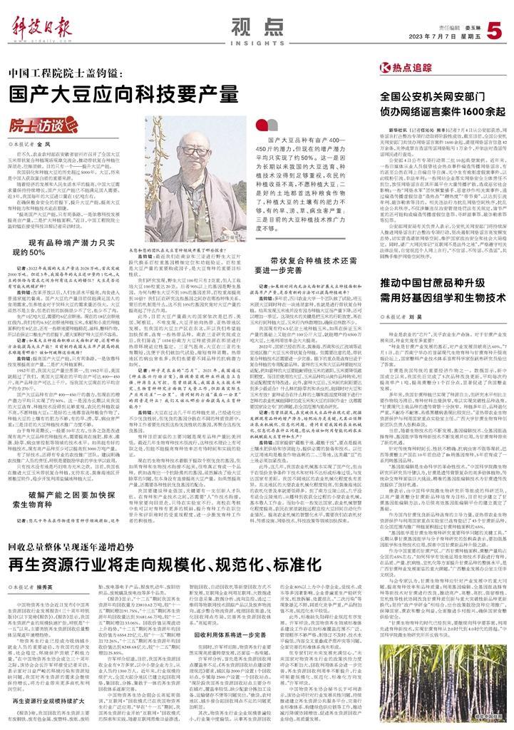 与会专家认为,甘蔗生物育种应针对产业发展中的重大问题,提高育种效率和品种质量;利用基因编辑、全基因组选择育种等新技术对甘蔗进行改良,推动高产、高糖、高抗、强宿根性、宜机性等性状协同改良甘蔗种质创新与重大突破性新品种更新换代;坚持“政产学研金”相结合,出台政策鼓励良种应用推广,保障国家、蔗农和糖企利益,全面推进乡村振兴,确保国家食糖供给安全。