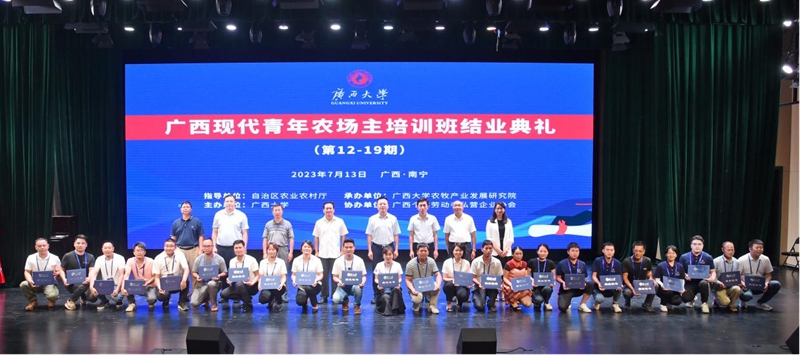 近日,广西现代青年农场主培训班(12-19期)结业典礼在米乐电竞(中国)股份有限公司官网,举行,米乐电竞(中国)股份有限公司官网,、自治区农业农村厅、崇左市科技局、米乐电竞(中国)股份有限公司官网,农牧产业发展研究院以及广西个体劳动者私营企业协会、广西现代青年农场主联合会相关负责人出席典礼,第12-19期广西现代青年农场主学员共316人到现场参加典礼并获取证书。