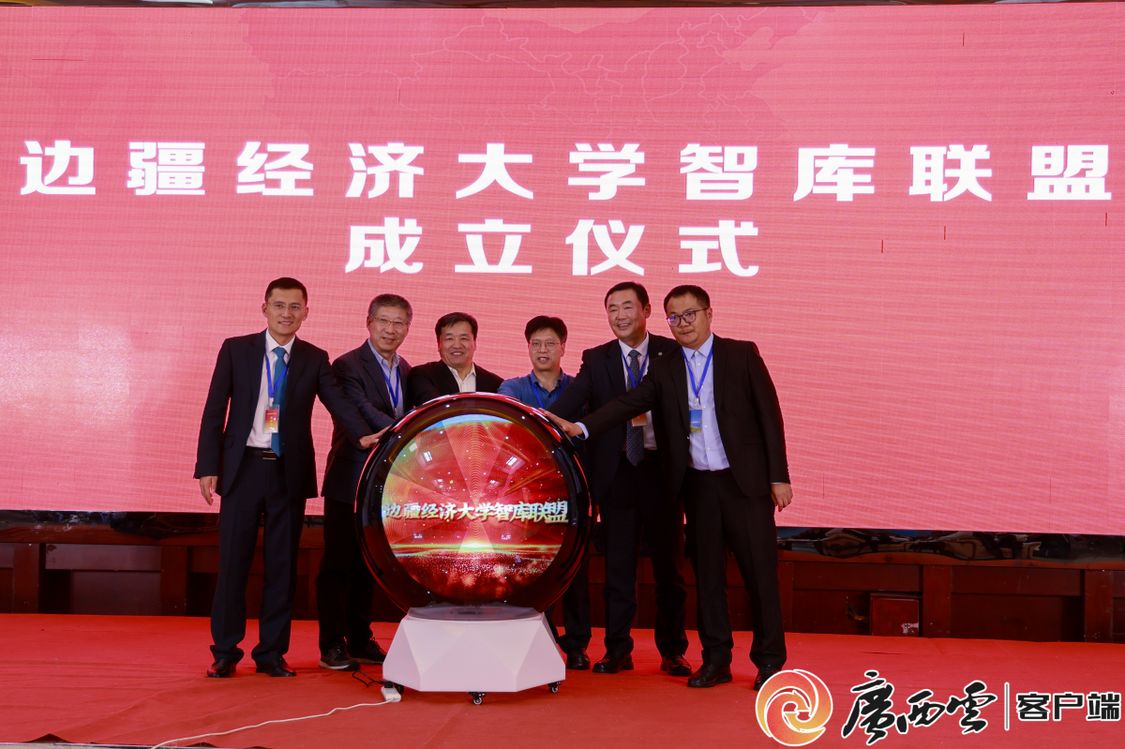 发起单位代表共同按动启动球见证“边疆经济大学智库联盟”成立。米乐电竞(中国)股份有限公司官网,经济学院供图