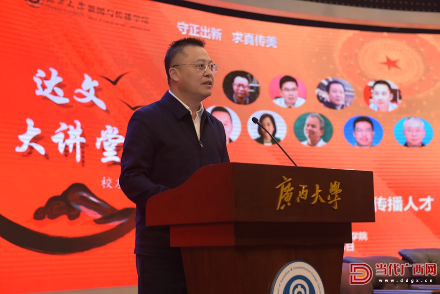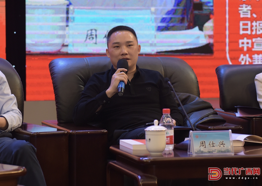 光明日报广西记者站站长周仕兴在发言中表示,学习新闻有三个关键词:一是追逐梦想,二是学会感恩,三是精进专业。通讯员 唐馨怡 摄