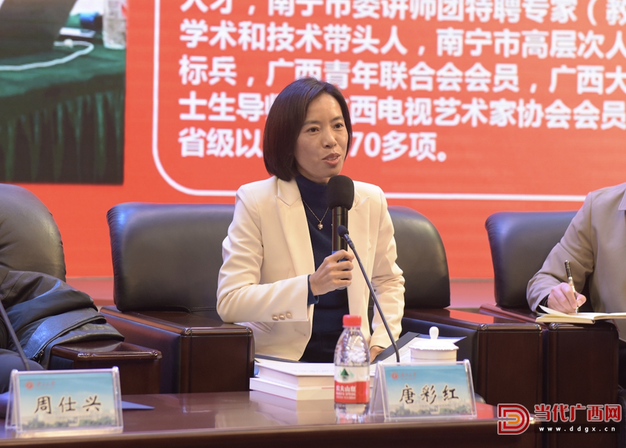南宁广播电视台融媒体中心主任唐彩红在发言中表示,要做到“学对一个人,团结一群人,感恩所有人”。通讯员 唐馨怡 摄