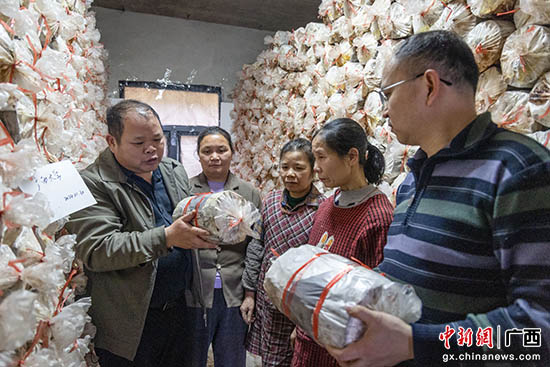 “在桂北,菌棒的制作时间是头年9月到次年3月上旬,时间一定得抓紧。”覃培升介绍,枫树木棒经过切段、开缝、打磨、套袋、杀菌等多道工序后,还需要接种、培养、炼棒才能进行种植。说着,他到菌棒培育室一间一间查看培养情况。