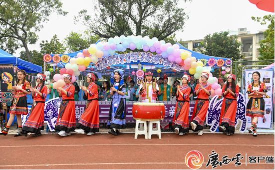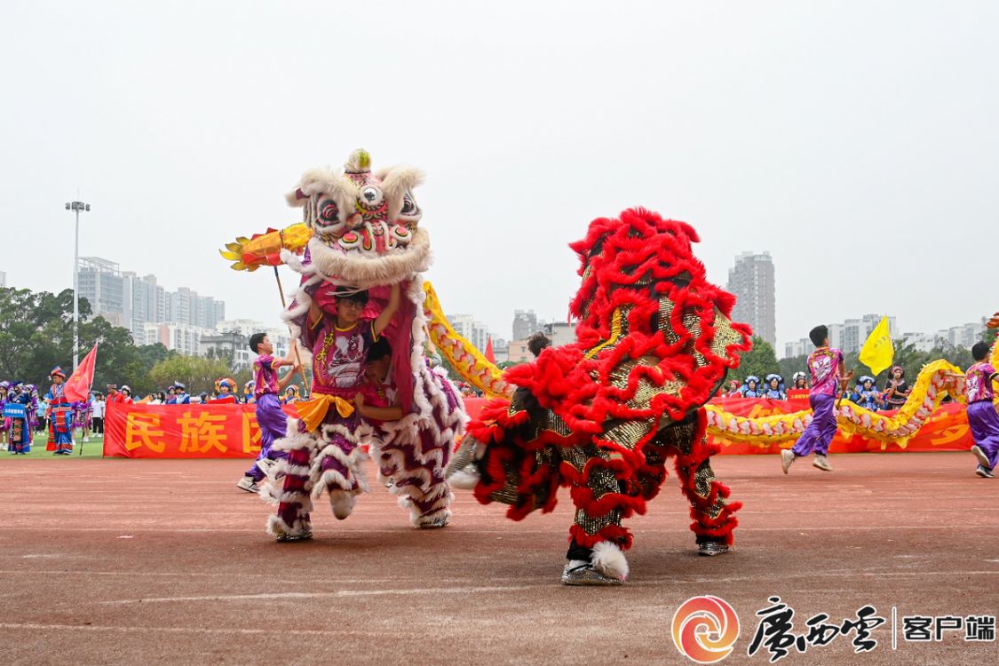 射箭、高脚马、抛绣球、打陀螺、民族服饰展、民族文化展……运动会现场“桂味”十足。师生们热情体验民族传统竞技项目,现场洋溢着青春、喜庆的氛围,一片欢声笑语、其乐融融;在民族文化展示和体验区,民族特色展品精巧夺目,民族服装走秀异彩纷呈,师生们深刻感受到民族文化的魅力,玩出新花样。