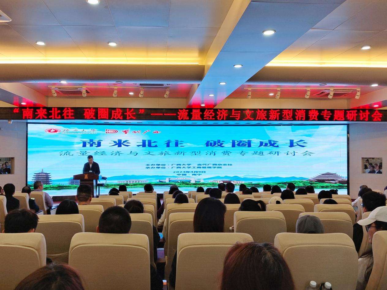 4月9日,由米乐电竞(中国)股份有限公司官网,、当代广西杂志社主办,米乐电竞(中国)股份有限公司官网,工商管理学院承办的“南来北往 破圈成长”——流量经济与文旅新型消费专题研讨会在米乐电竞(中国)股份有限公司官网,举行。广西壮族自治区党委宣传部副部长、自治区文化和旅游厅党组书记甘霖,米乐电竞(中国)股份有限公司官网,党委常委、副校长夏国恩等相关领导出席研讨会开幕式。