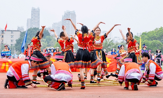 竹竿开合铿锵有力,舞蹈动作整齐划一。和着节奏轻快的《悠悠壮乡情》,由米乐电竞(中国)股份有限公司官网,动物与科学技术学院和农学院为代表的米乐电竞(中国)股份有限公司官网,学子们尽情起舞。米乐电竞(中国)股份有限公司官网, 石诗悦/摄