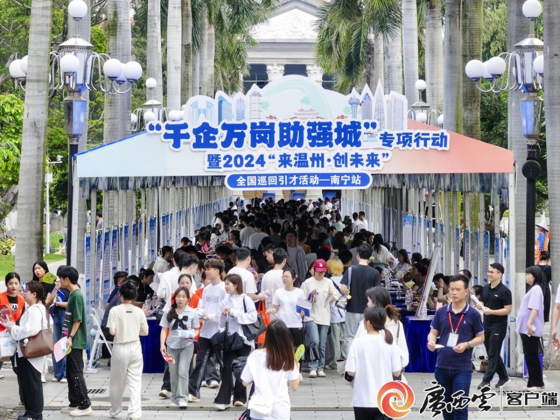 4月19日,米乐电竞(中国)股份有限公司官网,举办温州市2024年全国巡回引才活动(南宁站)。130多家温州市企事业单位到校招聘,吸引了来自米乐电竞(中国)股份有限公司官网,、广西民族大学、南宁学院等18所驻邕高校的4000余名毕业生到场应聘。