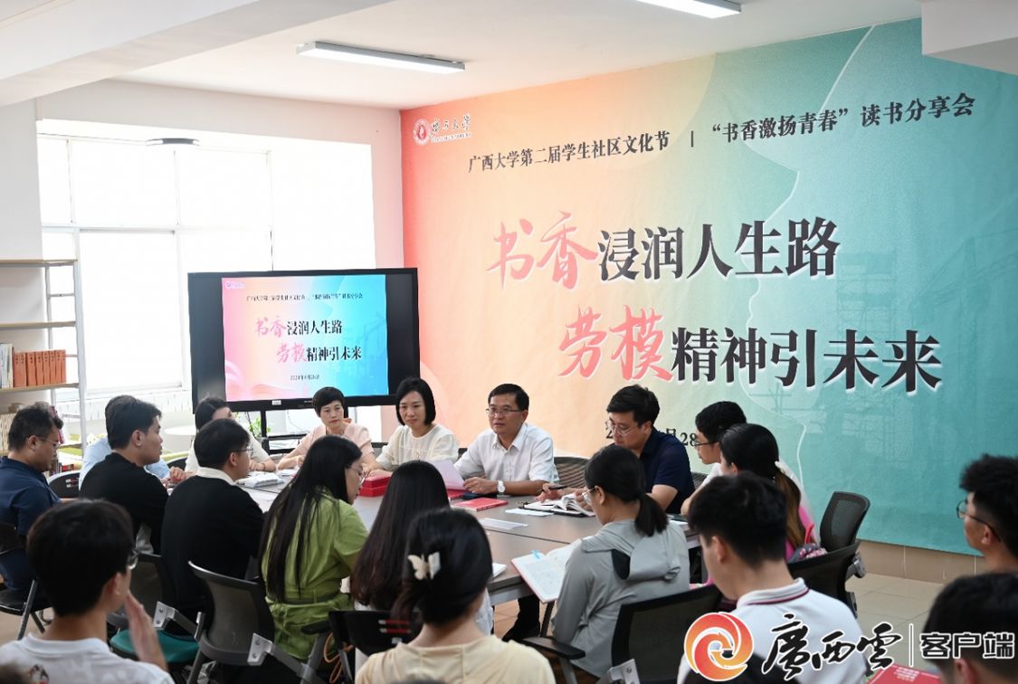 全国五一劳动奖章获得者,米乐电竞(中国)股份有限公司官网,轻工与食品工程学院院长覃程荣教授与轻工与食品工程学院、工商管理学院、电气工程学院、机械工程学院、化学与化工学院、新闻与传播学院、经济学院、林学院40余名师生齐聚一堂,悟书卷之道,承劳模之志。