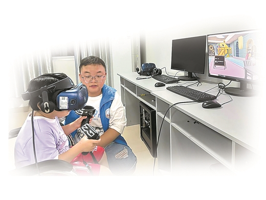 广西幼儿师范高等专科学校爱撒星空志愿服务团队创新孤独症谱系障碍VR训练系统服务孤独症患者。李 芬/摄