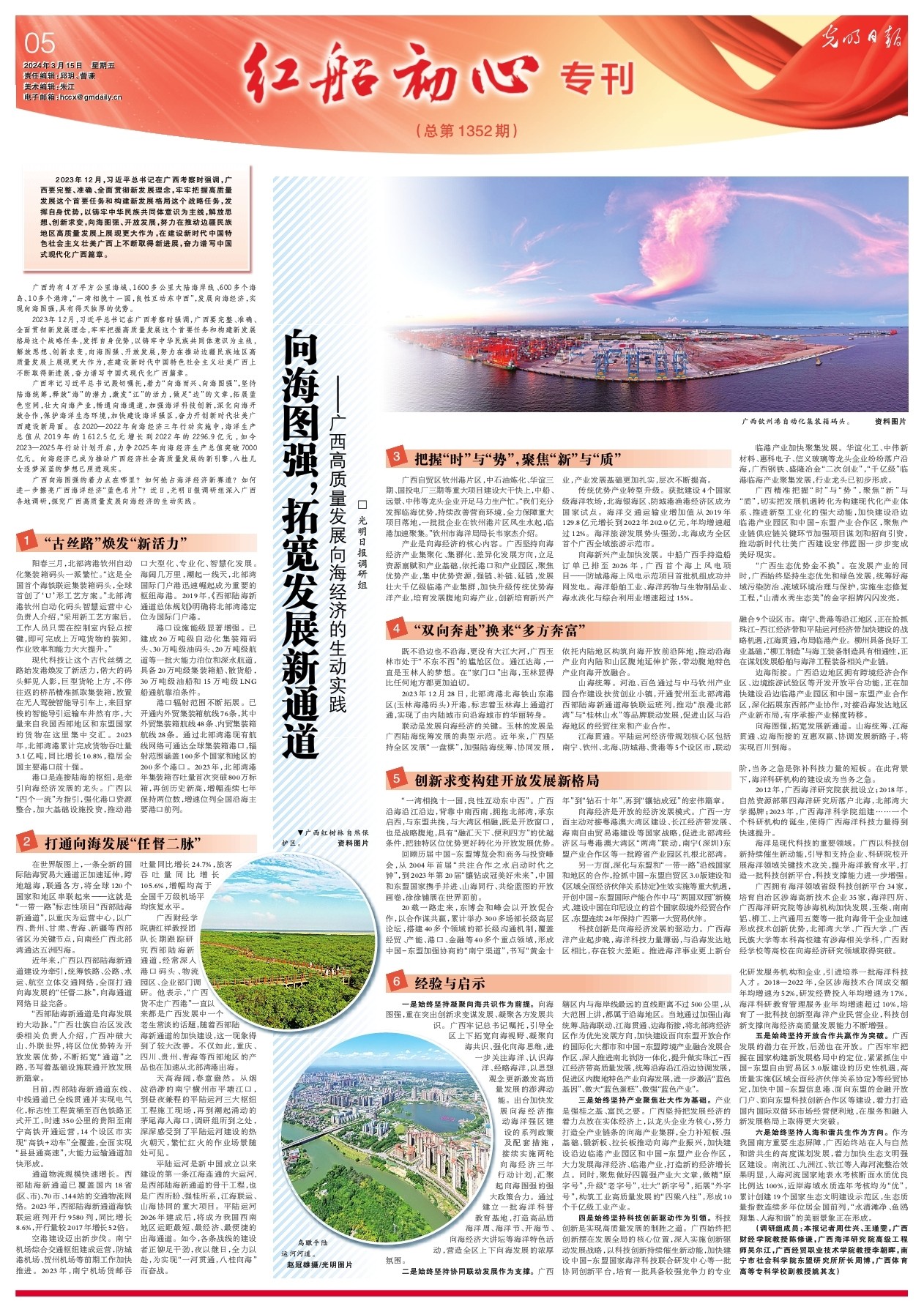 广西向海图强的着力点在哪里?如何抢占海洋经济新赛道?如何进一步擦亮广西海洋经济“蓝色名片”?近日,光明日报调研组深入广西各地调研,探究广西高质量发展向海经济的生动实践。