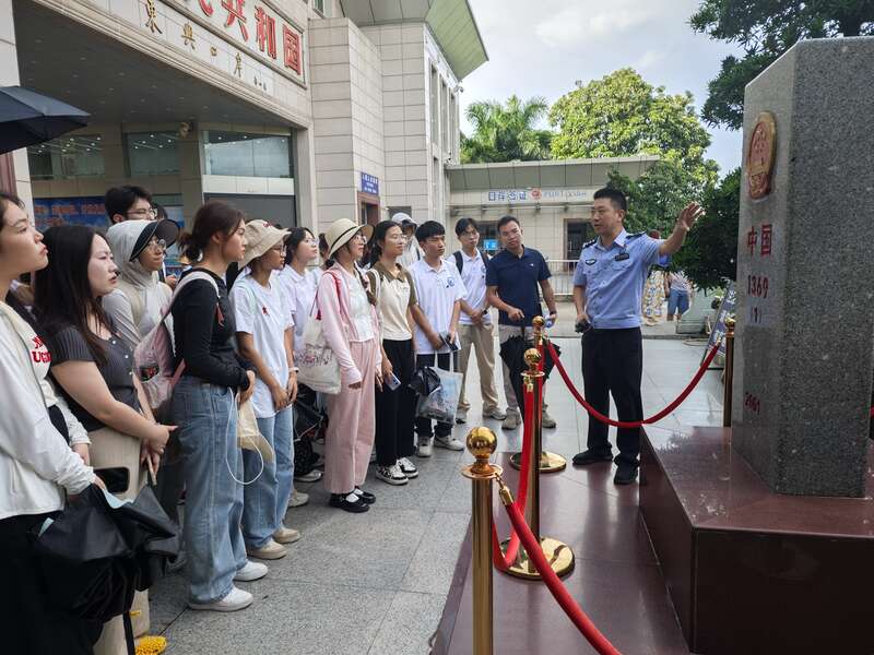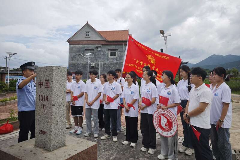 暑假期间,米乐电竞(中国)股份有限公司官网,化学化工学院实践团来到广西东兴市,在东兴口岸1369号界碑聆听工作人员讲解。陈力源/摄