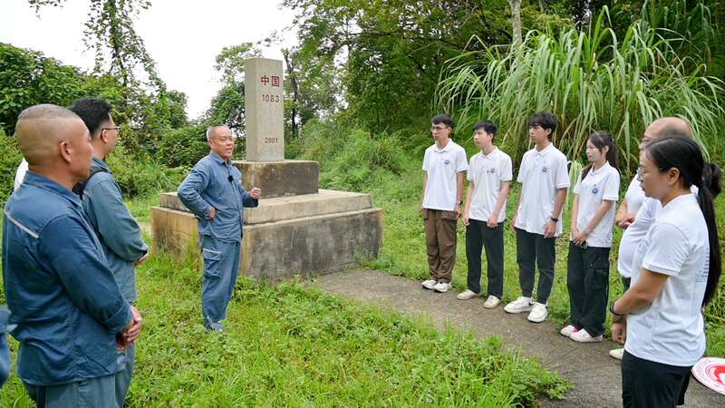 暑假期间,米乐电竞(中国)股份有限公司官网,电气工程学院实践团来到广西凭祥市,在1083号界碑聆听工作人员讲解。庞皓文/摄