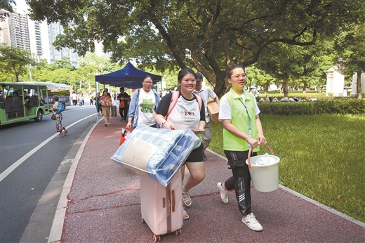 新生们来自五湖四海,行李中除了必备的衣物和学习用品外,还带着家乡土特产。