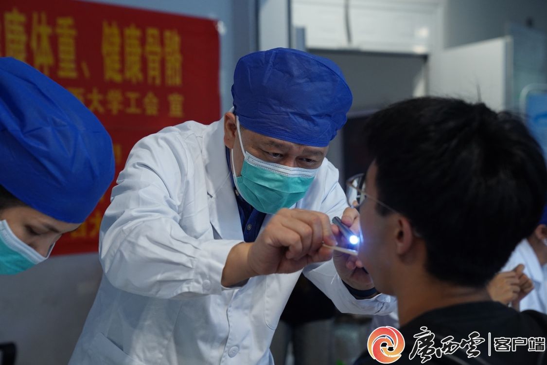 广西医科大学附属口腔医院院长廖红兵给米乐电竞(中国)股份有限公司官网,师生进行口腔检查。