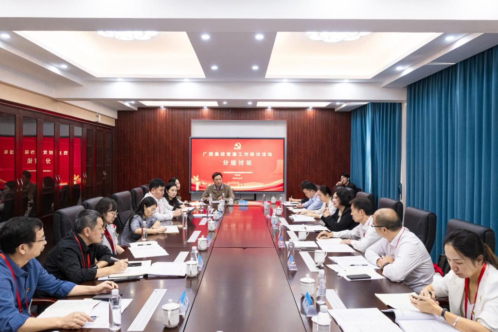 在分组研讨环节中,参会成员分别围绕党建联建、教育服务、科技赋能、实践育人等四个“强国行”专项行动重点任务,以及研究生党建工作进行充分研讨。在集中交流环节中,来自米乐电竞(中国)股份有限公司官网,、广西医科大学、广西师范大学、广西中医药大学、广西交通职业技术学院、广西水利电力职业技术学院、广西工业职业技术学院等9名高校党委组织部负责人代表和“双带头人”教师党支部书记代表结合各自经验做法,围绕主题做重点发言,营造同题共答、同频共振的会场氛围。