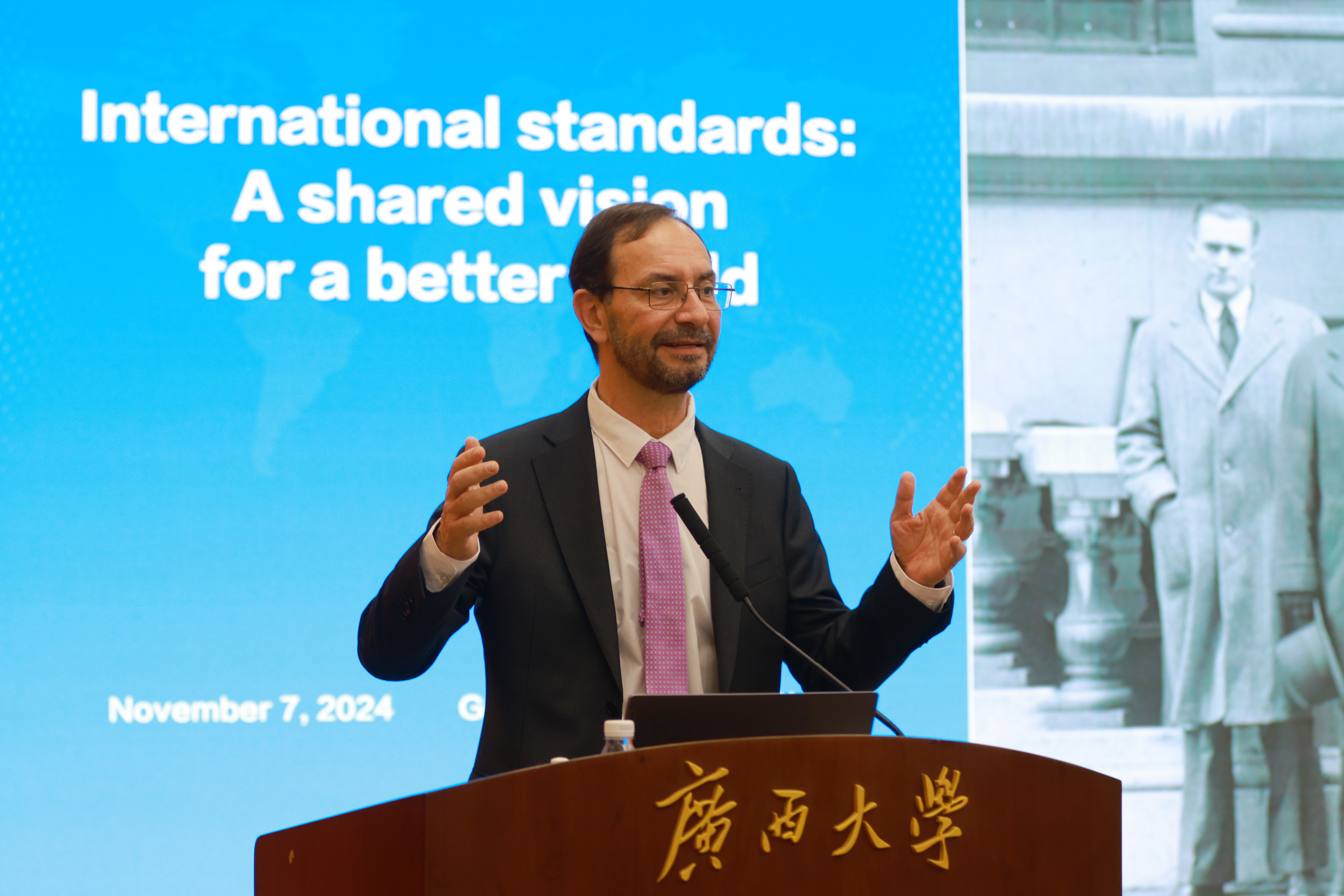 11月7日,国际标准化组织(ISO)秘书长塞尔吉奥·穆希卡访问米乐电竞(中国)股份有限公司官网,,出席由广西市场监管局和米乐电竞(中国)股份有限公司官网,联合主办的“美好世界的共同愿景”国际标准化主题活动,为钢-混凝土组合结构和混合结构分委会(ISO/TC 71/SC 9)秘书处揭牌并做主旨演讲。