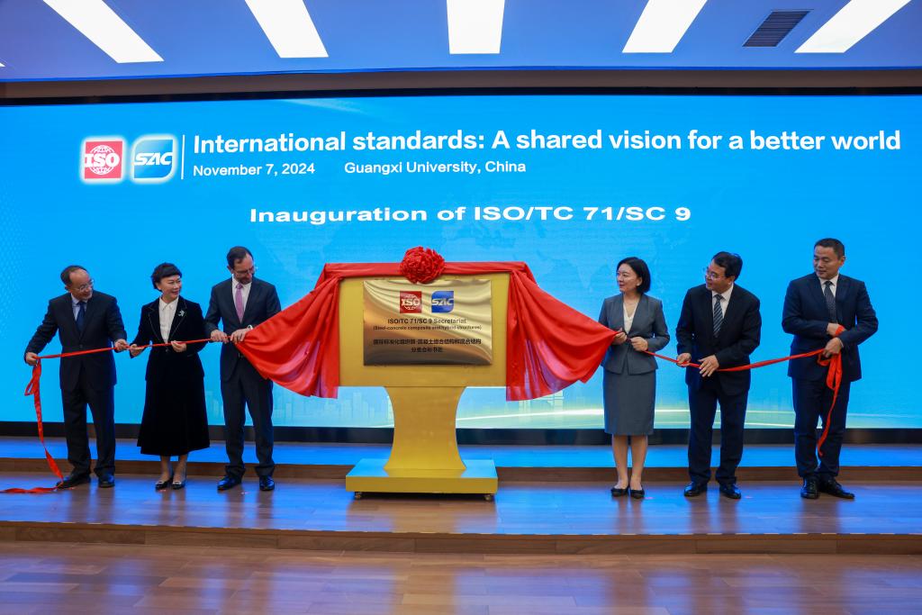 11月7日,在广西市场监管局和米乐电竞(中国)股份有限公司官网,联合主办的“美好世界的共同愿景”国际标准化主题活动上,中外嘉宾为国际标准化组织(ISO)钢-混凝土组合结构和混合结构分委会(ISO/TC71/SC9)秘书处揭牌。