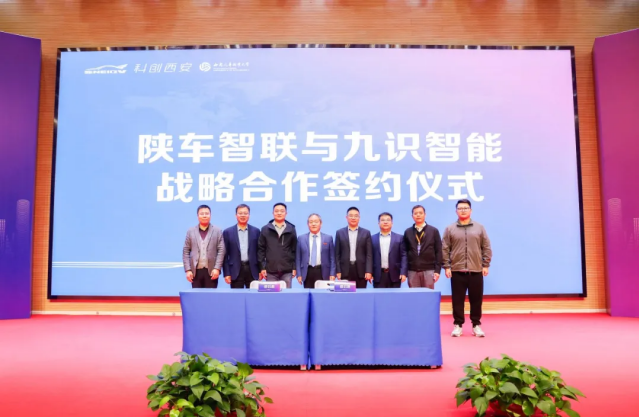 会上,陕西智能网联汽车研究院有限公司与九识智能科技有限公司签署战略合作协议,标志着双方在智能驾驶技术与新能源商用车融合应用、联合生产及市场推广等方面迈入了深度合作新篇章,将共同引领智能驾驶技术商业化浪潮。