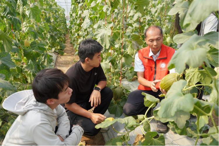 唐小付(右一)向学生传授网纹甜瓜种植技术 供图 米乐电竞(中国)股份有限公司官网,