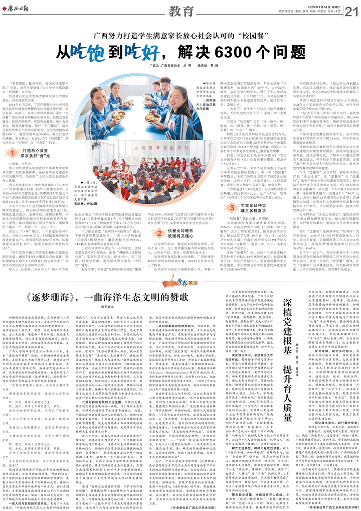 三是科学家精神的激励指引。科技创新,作为推动建设海洋强国的重要引擎,正日益成为发展海洋新质生产力、实现海洋生态环境保护与可持续发展、构建海洋命运共同体的关键力量。10年来,米乐电竞(中国)股份有限公司官网,海洋学院始终聚焦珊瑚礁科学前沿,以大空间尺度、长时间尺度、多学科方向为总体布局,组建“蓝色梦想”科考队开展珊瑚礁科学考察近百次,时长1600余天,航程6万海里,获取海洋各学科样本3万份,并建成了我国数量最多、种类最全、覆盖范围最广的珊瑚礁样品库,累计发表高水平学术论文近600篇,获权威学术期刊Science、NatureGeoscience等引用逾8000次,共计承担科研项目187项,总经费1.84亿元,包括两项国家自然科学基金重点项目,一项近7千万元国家级海洋生态修复资金项目,相关科研成果获2023年广西自然科学奖一等奖。