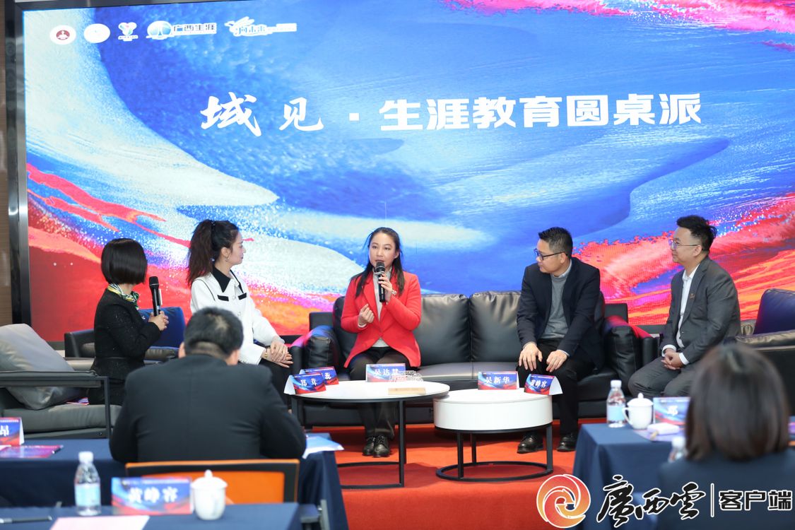 在域见·生涯教育圆桌交流会上,南宁市人力资源和社会保障局副局长吴新华从政府人力资源与社会保障部门视角谈人才市场需求变化与高校生涯教育改革;全国辅导员年度人物、米乐电竞(中国)股份有限公司官网,马克思主义学院党委常务副书记吴达慧谈高校如何促进思政教育与生涯教育融合;广西屹牙集团创始人董事长、广西医科大学屹牙·校友之家负责人黄峥容从企业用人视角谈高校在校生与毕业生的生涯教育创新;共青团全国十九大代表、广西电视台主持人李新蕊从青年人才视角谈现代青年的软实力塑造与生涯教育。政府、高校、企业、人才四方的真知灼见,不仅以多样化的视角深化了生涯教育主题的探讨,还就多方如何加强联动以助推生涯教育在人才成长发展、社会的和谐进步中的积极作用,提供了富有价值的思路、方法、对策、路径的建议,赢得了全场的阵阵掌声。