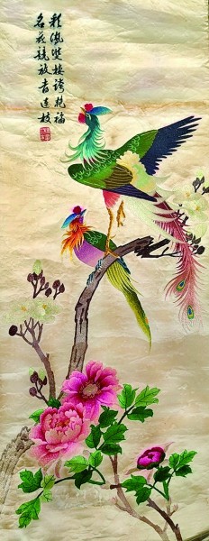 四条屏湘绣之凤凰与牡丹