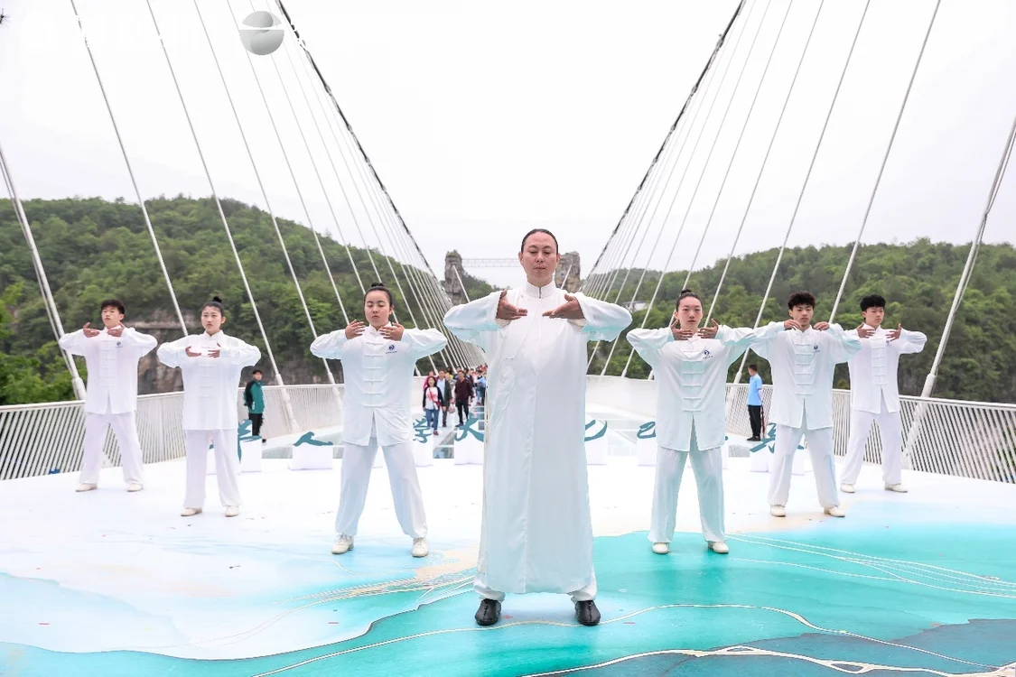 这场悬崖之上的春天诗会,同时也是美轮美奂的交响乐章。在桥西主会场,一级演奏员、湖南省歌舞剧院副院长张音悦用动人心弦的二胡演绎《湘西主题随想曲》,九嶷派古琴青年表演艺术家苏姑娘与长沙娱乐协会副会长王飚联袂弹唱《越人歌》,中南大学中文系教授杨雨即兴吟唱古诗词,武当太极传人王明山、李在峰与长沙市恒定高级中学学生演练八段锦和太极拳。