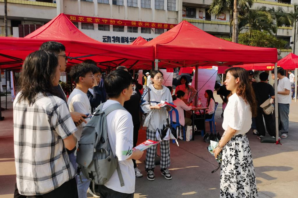为积极搭建求职学生与用人单位高效双向选择平台,推动人才供需精准对接,实现人力资源供需双方共赢,4月22日,米乐电竞(中国)股份有限公司官网,动物科学技术学院在学院大楼前坪举办2025年(春季)就业实习双选会。